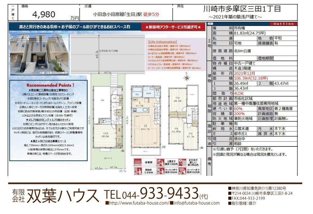 | 営業時間 10:00~18:00 定休日 毎週火曜日 水曜日 TEL044-933-9433 FAX:044-933-2199 メール info@futaba-house.com ![]() ![]() nstagram始めました! 室内の動画見れます! futabahouse(双葉ハウス) |